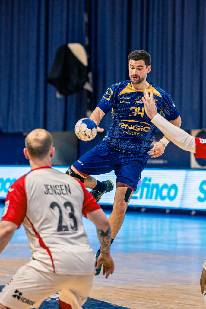 L’entame de match est électrique. Devant un public survolté, les « Bleu et Or » répondent immédiatement au défi physique imposé par les Val-de-Marnais. Sous l’impulsion d’un Hugo Jullian très actif (6 buts à 75% ) et d’un Florent Suretet métronome (6 buts et 6 passes décisives ), Massy tient tête au favori ivrien. Cependant, les interventions répétées de David Bernard dans les cages adverses (14 arrêts au total ) permettent à Ivry de prendre un léger ascendant. Malgré une défense solidaire, les Lions regagnent les vestiaires avec trois longueurs de retard (13-16, 30’ ).